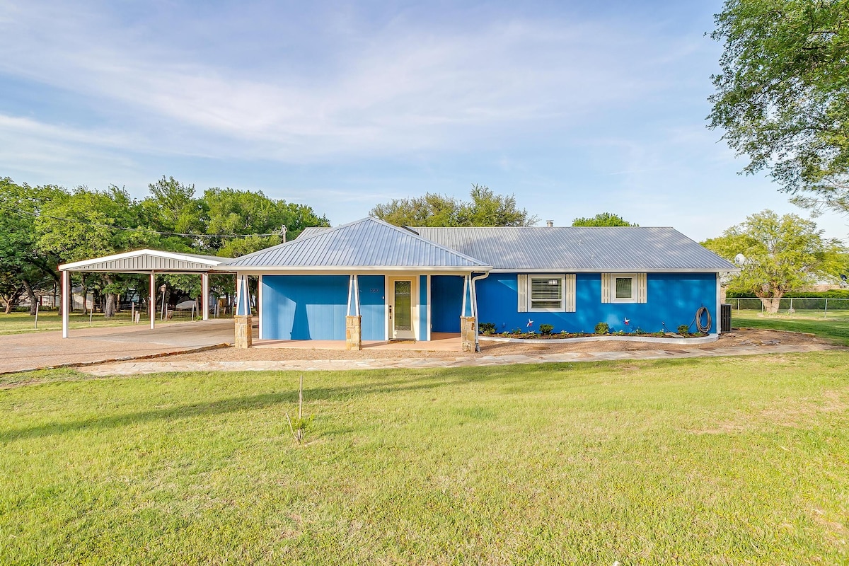 New 3 bedroom, 2 bathroom, spacious, fully furnished and equipped modern home within blocks and walking distance from the Baker Hotel and downtown shopping and dining. Washer & dryer included. Outdoor fire pit & chairs. Large fenced backyard. Plenty of parking and storage. Comfortably fit up to 8 people. WiFi, large screens in living area & master bedroom. Great for families & couples, please no work crews. 22 Miles to Rocker B Ranch 3 Blocks from Baker Hotel & Downtown Mineral Wells