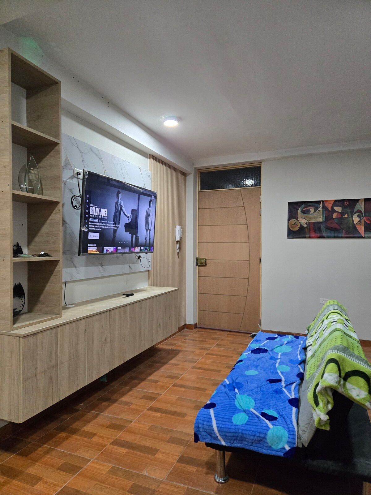 Apartamento no coração de Huancayo Desfrute de uma localização privilegiada, a uma curta caminhada da Real Plaza e do Mall Plaza, parques, restaurantes e tudo o que você precisa para se locomover confortavelmente. Área segura e tranquila para que você possa desfrutar da sua estadia ao máximo. O apartamento conta com: Cozinha totalmente equipada com utensílios de cozinha e eletrodomésticos. Sala de estar acolhedora com sofá, poltronas e TV Quarto confortável e privado. Espaço de trabalho Você vai se sentir em casa!