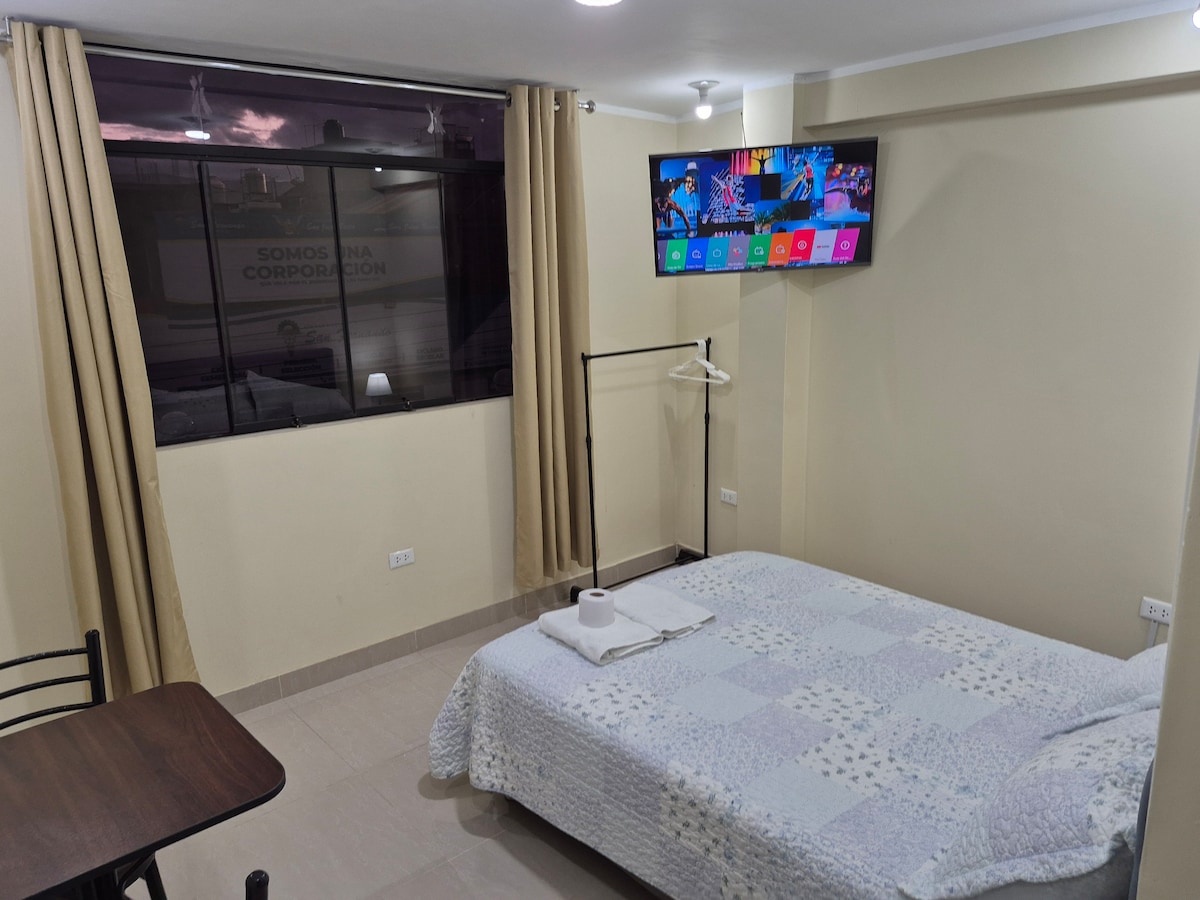 Brindamos un alojamiento (departamento completo amoblado) que cuenta con el equipamiento y servicios básicos para los viajeros turistas y ejecutivos. El departamento es recibe mucha luz natural y está ubicado en un primer piso . Tiene un kitchenet , comedor, sala, un baño con ducha de agua caliente y una habitacione completa. Ofrecemos los servicios básicos (luz, agua, gas), además de WiFi y cable TV."