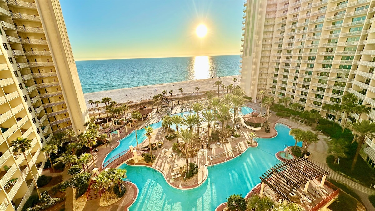 Escapada romântica à beira-mar no Majestic Beach Resort. Acorde com vistas deslumbrantes do Golfo da sua varanda privativa e relaxe em uma confortável cama king-size a poucos passos da areia. ⭐ Acesso direto à praia. ⭐2 espreguiçadeiras de praia + guarda-sol incluídos de (março a outubro) 9h às 17h ⭐Piscinas internas e externas + banheira de hidromassagem. ⭐Varanda privativa com vista para o pôr do sol. ⭐Check-in automático e segurança 24 horas. ⭐Localização privilegiada. Perfeito para casais que procuram uma viagem relaxante e sem estresse em Panama City Beach.