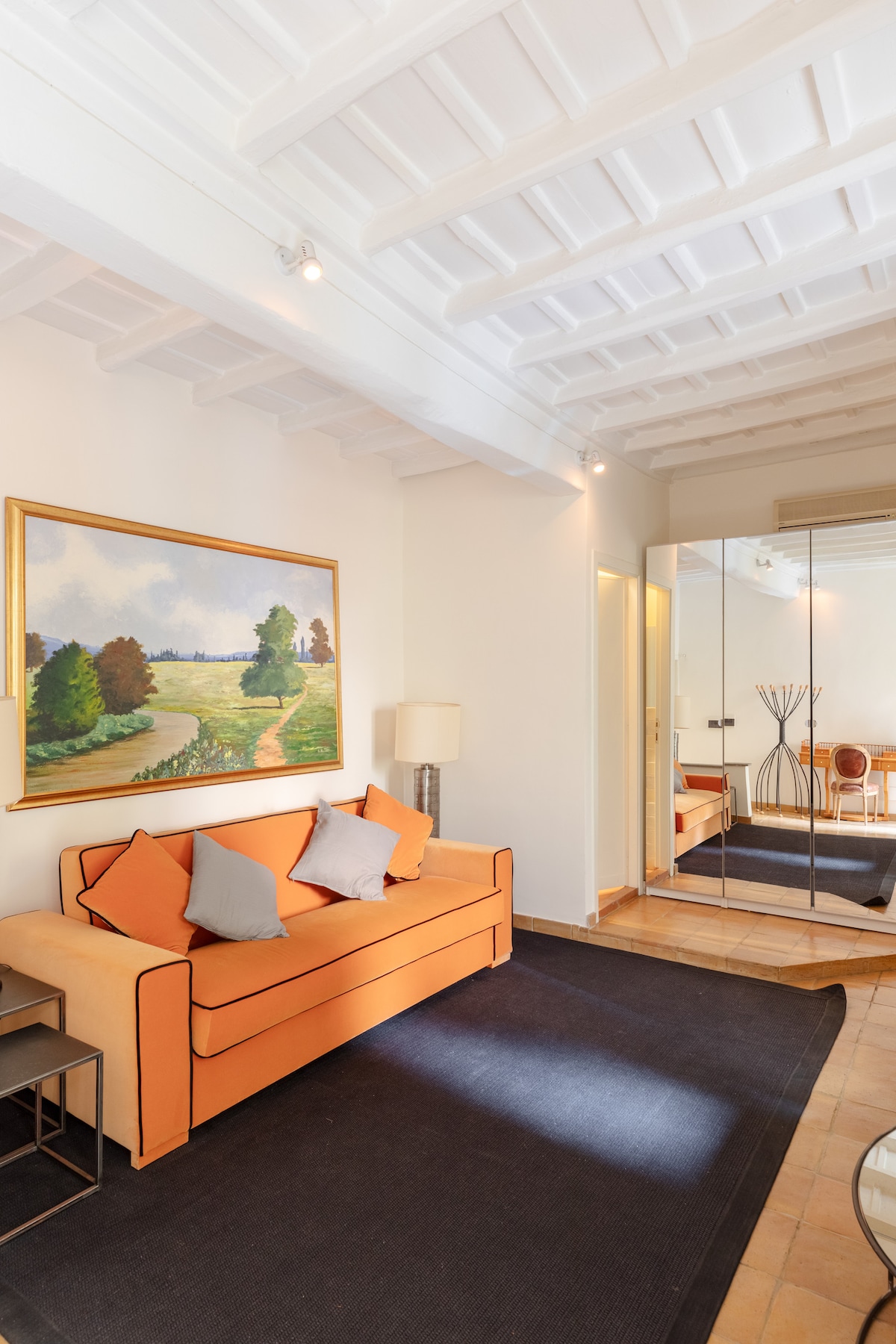 Apartamento de luxo a poucos passos da Piazza Campo de' Fiori e da Piazza Navona, situado no coração do vibrante e histórico centro de Roma. Esta área encantadora é rica em cores, sabores e séculos de história. O apartamento dispõe de uma espaçosa sala de estar com uma área de jantar, uma cozinha totalmente equipada, um quarto generoso e um banheiro privativo com um chuveiro, acessível a partir do corredor. Um refúgio elegante no coração de Roma.