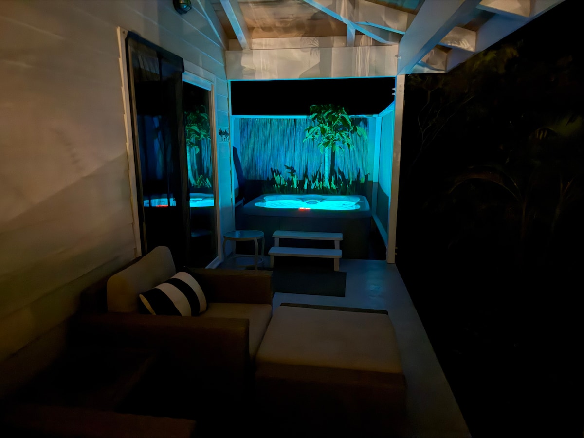 The Pineapple Express is a 500 sq ft, 1 bedroom, 1 bath home with ocean views, a private NEW HOT TUB (November 2025), tropical decor, and landscaped with tropical foliage. The home is located in Milolii near city of refuge, Punalu’u bakery, South point. Milolii is 35 miles south of Kona and 65 miles north of Volcanoes Natl. Park. Great area for the adventurers. The home is situated in the quiet rural community of Milolii. The nearest amenities are 14 miles south in Ocean View. 600 MBPS WIFI