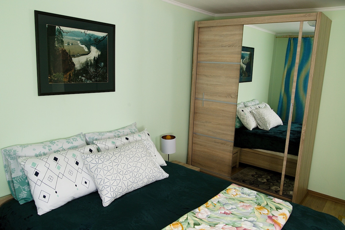 Localizado no melhor bairro de Liepaja - seguro, tranquilo. Muito perto da PRAIA, centros comerciais, restaurante "Olive", pizzarias, pedestres e uma ciclovia. O apartamento de 1 quarto recém-reformado (35 m2) está localizado no 3º andar. VARANDA com uma vista mais verde sobre as árvores do parque e o som dos pássaros e do mar. Estacionamento gratuito perto da casa. A 25 minutos a pé do centro de Liepaja. A parada de bonde fica muito perto. Você está a apenas uma curta distância de carro do centro da cidade.