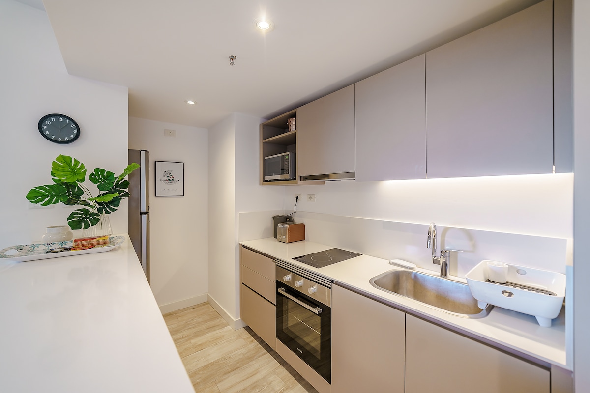 Apartamento de luxo de 2 quartos: elegância da cidade com piscina e academia