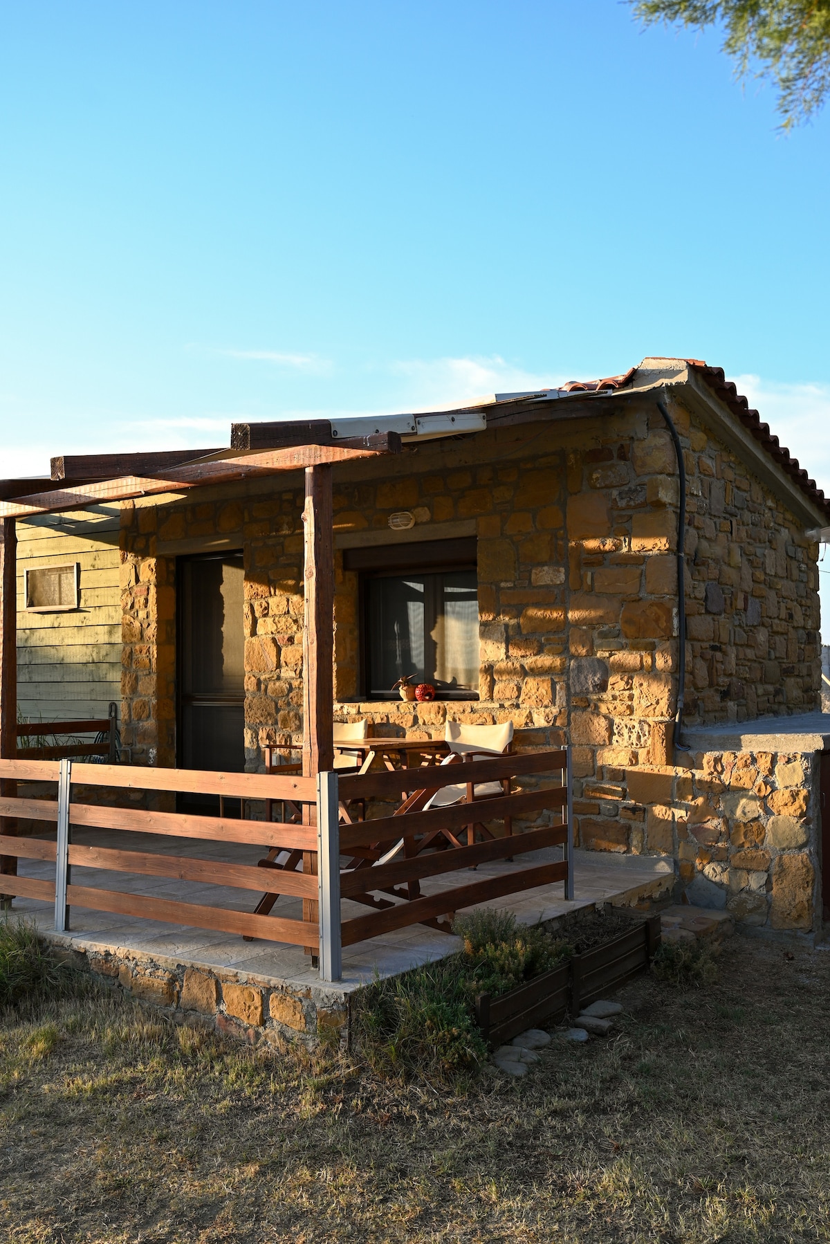 Bem-vindo ao bangalô ecológico que está localizado na praia de Keros. É uma casa de pedra de 20 m² com terraço a partir do qual você pode ver a baía e desfrutar do belo pôr do sol. Tem um pequeno banheiro com chuveiro e também uma cozinha. O bangalô opera apenas com fontes de energia renováveis.