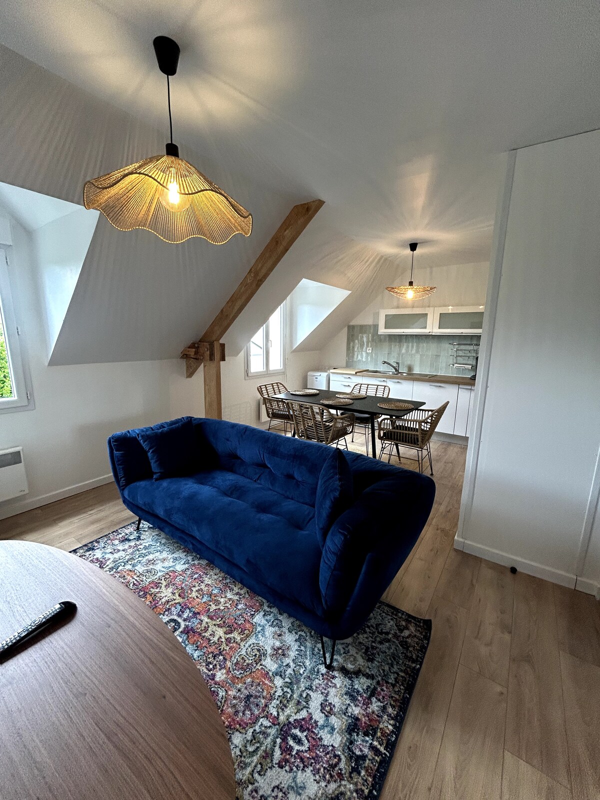 Chez Odette A escala ideal em Saint Malo! Este apartamento 4* é espaçoso, confortável e tem uma decoração elegante. A localização é excepcional: em um prédio de luxo, perto de lojas, fica na beira da praia, que é acessada por uma passagem privativa Você vai apreciar a vista para o mar, graças à sua varanda mobiliada Para que você não se preocupe com nada: a roupa de cama, a casa, o banheiro e o wi-fi estão incluídos no serviço, bem como um estacionamento privativo/seguro
