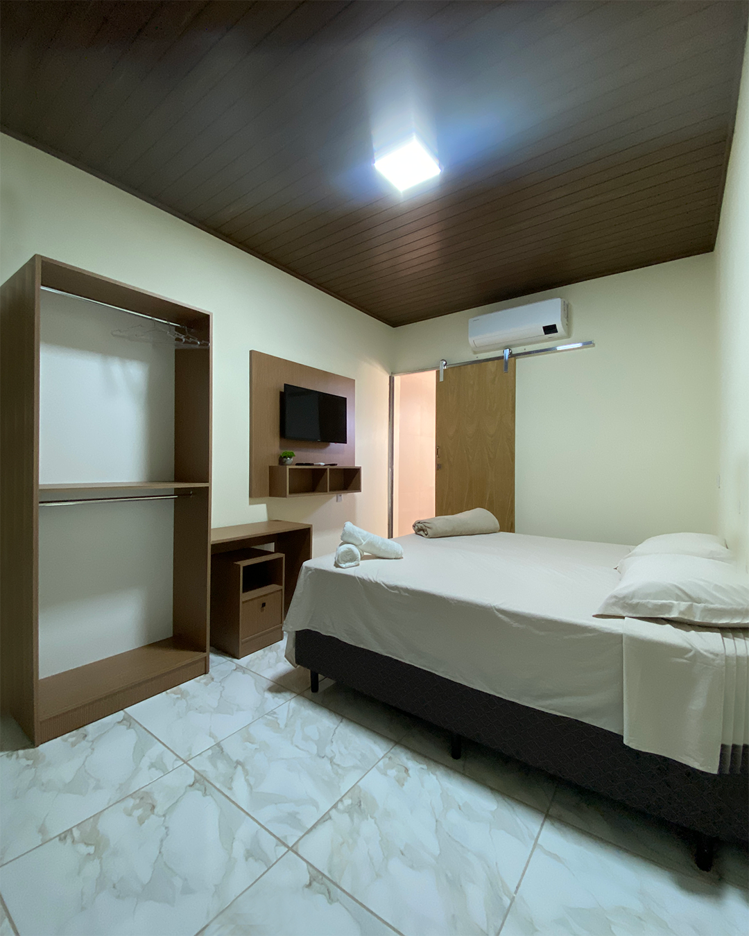 Suíte no centro de Bonito a 100 metros da praça principal. Nossa localização privilegiada no coração de Bonito permite que você explore a cidade a pé, com conforto e praticidade, tornando sua estadia ainda mais especial. HOSPEDAGEM E AVENTURA: Além de um quarto aconchegante, oferecemos várias opções de passeios imperdíveis pela nossa agência de turismo. O conforto e a qualidade que você procura para viver uma experiência única em Bonito.