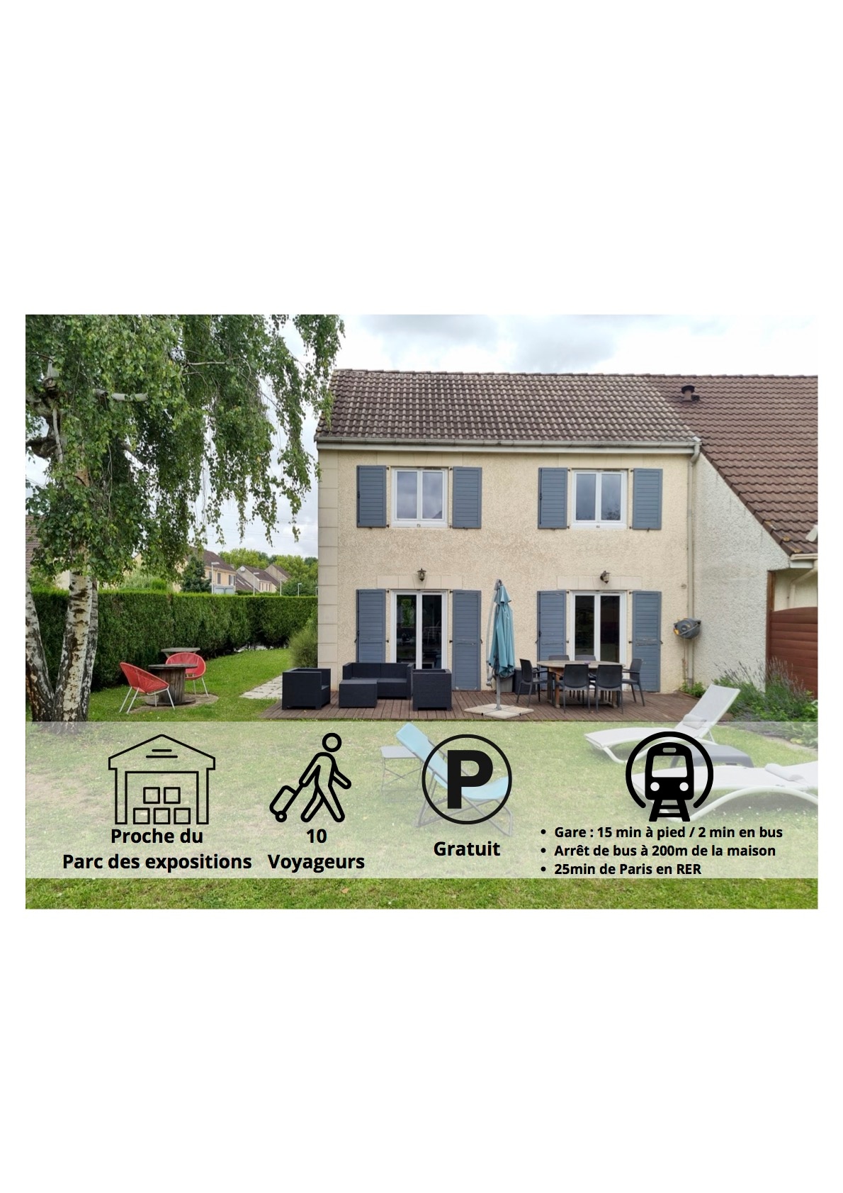 Este encantador e conveniente pavilhão é ideal para uma estadia confortável. Perto do aeroporto CDG e do Centro de Exposições Villepinte, Paris pode ser alcançada em menos de 30 minutos pela RER. O pavilhão também tem um estacionamento privativo equipado com um ponto de carregamento elétrico. Se você está aqui para um evento no Parc des Expos, a trabalho ou apenas para explorar a região de Paris, nosso pavilhão oferecerá uma estadia agradável e conveniente. Festas e festas proibidas!