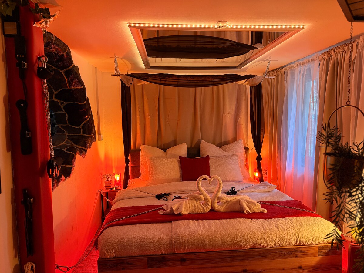 Acomodação em um apartamento self-service experiencial com carro Ferrari: - Cama de casal para 2 pessoas + 2 camas extras - Ferrari California 30 Edition - A esquina do piloto de Fórmula 1 mais bem-sucedido - Ferrari Certified Model Collection - Simulador de veículos, incluindo Ferrari - Jacuzzi - Sauna - Mesa de bilhar - PS5 - Banheiro privativo com wc - Quarto - Kitchenette equipada com micro-ondas, cafeteira, chaleira, fogão de indução, frigobar/geladeira - Jardim com mesas ao ar livre com plantas vivas - Assento