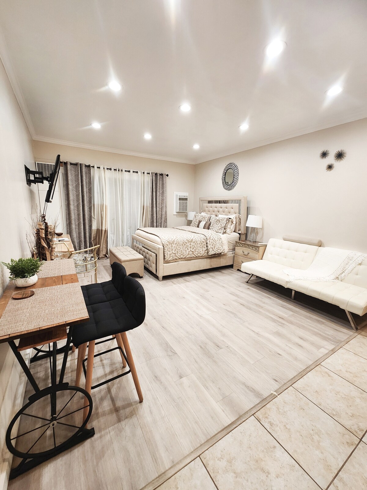Estúdio de nível superior abobadado a 1,5 milhas do Ski Resort e da Main St (a aproximadamente 5 minutos de distância) 360 pés quadrados. Ônibus GRATUITO leva você a resorts/compras. TV Smart de 60", pisos de madeira, lareira a gás, cozinha PEQUENA, cama king size (2 pessoas) e sofá-cama de tamanho normal com colchão de espuma de memória (1 pessoa). Banheira de hidromassagem aberta o ano todo. Piscina aberta durante os meses de verão. Restaurantes a uma curta distância a pé. Você precisará subir um lance de escadas para acessar. Quero que meu estúdio pareça sua casa longe de casa!