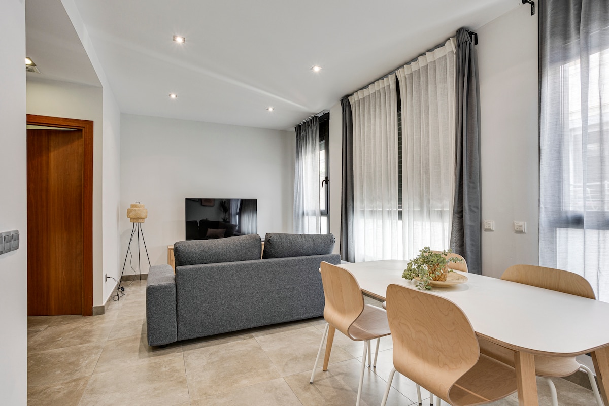 Stylish apartment on a semi-pedestrian street in the iconic Gracia neighborhood, 800 meters from Sagrada Familia and Hospital de Sant Pau, and a 20-minute walk to Parc Güell or Passeig de Gracia. Comfortable, quiet, and elegant, the apartment is fully renovated. It features a queen-size bed, high-quality linens and towels, AC, kitchen, and sofa bed. Enjoy 2 SmartTVs (Netflix, HBO...) and high-speed Wi-Fi. This cozy apartment offers access to a beautiful, dynamic neighborhood from a serene street