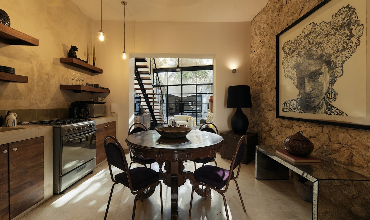O Espacio Ukiyo é um alojamento único, com uma localização excepcional onde pode desfrutar da vida do centro histórico de Mérida e de todos os confortos da vida contemporânea, rodeado de arte e do sabor da vida do passado, sem problemas, sem excesso, um espaço para " desfrutar do presente " Além de oferecer um terraço com jacuzzi (não aquecida) e móveis para relaxar depois de passear pela cidade Design por arquitetura estilo oficina