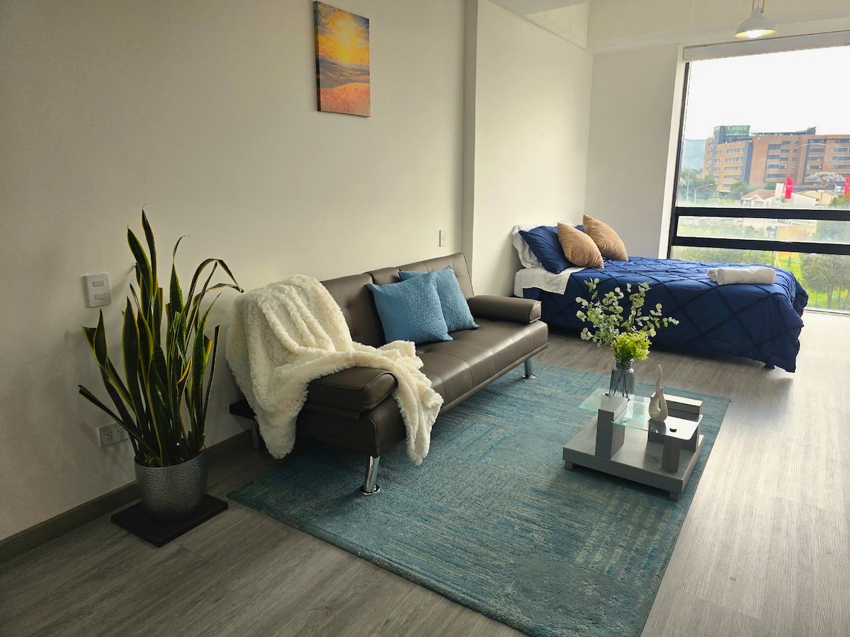 Apartamento estúdio moderno nas colinas orientais, ao norte de Bogotá, com jacuzzi e vista panorâmica da cidade. Localizado perto do centro empresarial North Point, em um complexo moderno, seguro e completo, com terraço para churrasco, academia, pingue-pongue, coworking e área de boxe. Além disso, há lojas e bancos nas proximidades. Um refúgio de luxo em um ambiente urbano exclusivo.