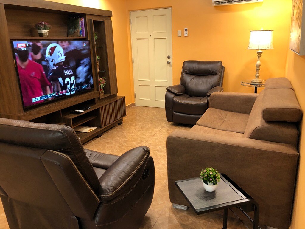 - 100% privativo - Pátio Interior - 17 minutos do Consulado Americano, 12 min para Aeropuerto, 7 min para Sanmarino - 1 cama queen + 1 sofá-cama - 2 Smart TVs e internet - Kitchenette - Check-in: 15h00 Check-out: 11h00 - Cédulas/passaportes necessários - Estacionamento privativo gratuito na Plaza Guayarte, em frente ao condomínio, protegido. Tempos: Domingo e quinta-feira: aberto das 6h às 00h Sáb e dom: aberto das 6h às 1h - Estacionamento sem tutor: Em frente à entrada principal. (1 espaço)