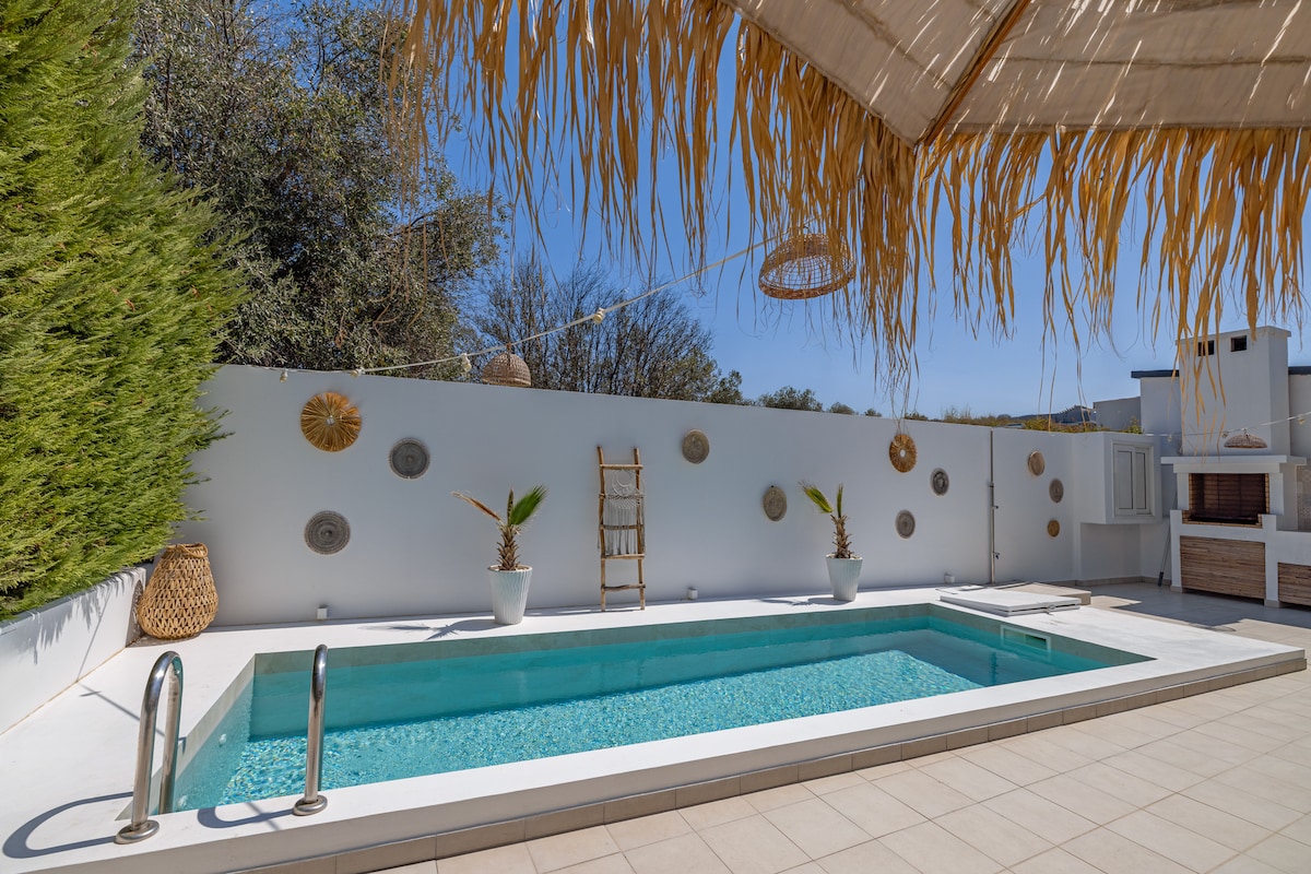 Vila de luxo com piscina recém-construída (totalmente climatizada e ventiladores de teto) Uma deslumbrante vila de luxo de 150 m² aninhada em um jardim verdejante na pitoresca cidade de Ialyssos, a apenas 7 km do aeroporto e da cidade de Rhodes. Uma curta caminhada de 5 minutos o levará à bela praia de Ialyssos, onde você pode explorar excelentes bares, restaurantes, serviços de aluguel de carros, supermercados, uma estação de táxi e muito mais. Relaxe na nossa piscina, seja aproveitando o sol da manhã ou desfrutando de uma bebida à noite.