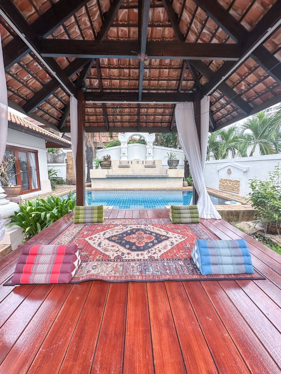 Vila com piscina de 2 quartos em estilo tailandês moderno Localizado bem no centro da Praia de Jomtien, Pattaya. Localização número um, perto de Jomtien e DongTan Beach. Restaurantes, bares, mercados, bancos, 7/11 etc. Tudo a uma curta distância a pé. TukTuk (24h) leva você ao centro de Pattaya e à Rua de Caminhada em 10 minutos. As villas estão totalmente equipadas, banheiros grandes, quarto com cama king size, TV a cabo, Internet, cozinha, máquina de lavar roupa, etc. Piscina privativa, rodeada por jardim tropical.