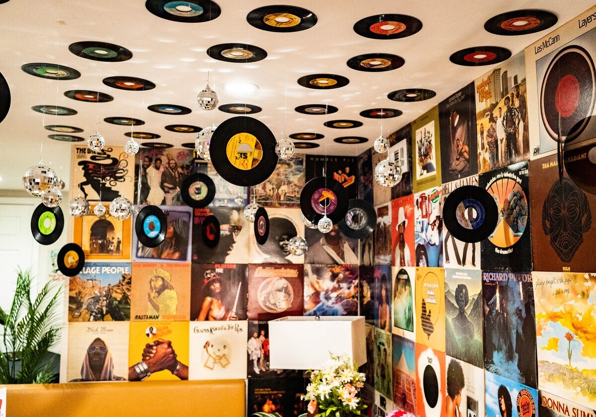 Uma espetacular fachada de mármore do antigo Banco Polonês convida você a entrar neste apartamento projetado com móveis modernos de meados do século. O apartamento de 74 metros quadrados no 2º andar apresenta tetos abobadados originais e paredes com colunas do século XIX e muitas das características originais de sua antiga vida como banco, ao mesmo tempo em que combina móveis modernos para criar uma vibe vintage moderna.