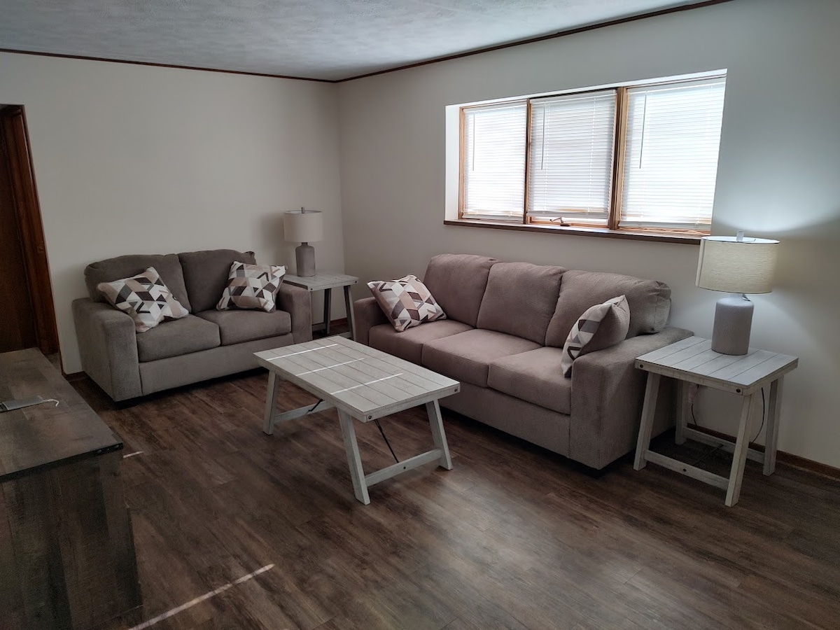 Casa de campo bonita totalmente remodelada com novo sistema de ar central com SANITIZADOR UV embutido. Pequena área de quintal cercado privado. Localizado no centro de Great Bend, no beco de um bairro muito tranquilo e seguro. Café fornecido. Roku TV, Netflix e Wi-Fi. Estacionamento privativo. Acesso por teclado. Itens básicos de cozinha para seu uso. Pequena casa de campo - a área de estar é de 400 pés quadrados. Perfeito para o seu fim de semana de corrida ou fim de semana de caça e seu cão!
