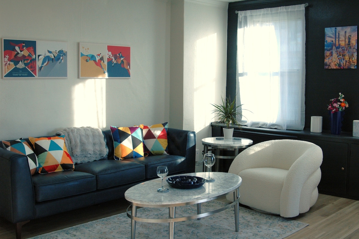 Um quarto, tetos altos em apartamento de luxo moderno!