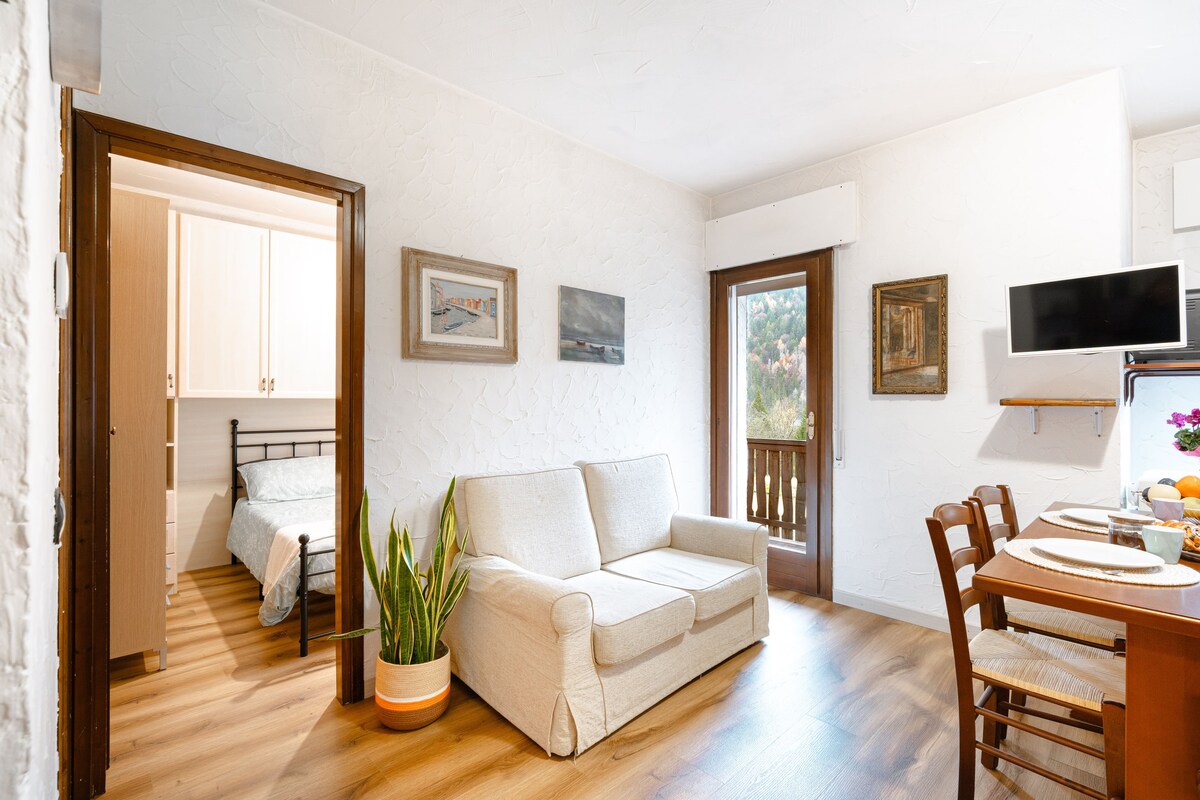 Apartamento estúdio agradável e intimista mobiliado em estilo rústico com sauna e jacuzzi. Faz parte de uma bela casa de madeira em uma pequena aldeia em Peaio di Cadore, uma pequena aldeia de Vodo, uma aldeia no centro de Cadore, a 15 km de Cortina d'Ampezzo. Ideal para quem ama paz, silêncio e tranquilidade.<br><br>O apartamento estúdio é composto por uma confortável cama de casal, um sofá, uma lareira elétrica, uma TV LCD, uma mesa de madeira e um canto equipado com fogão, micro-ondas e máquina de lavar louça.