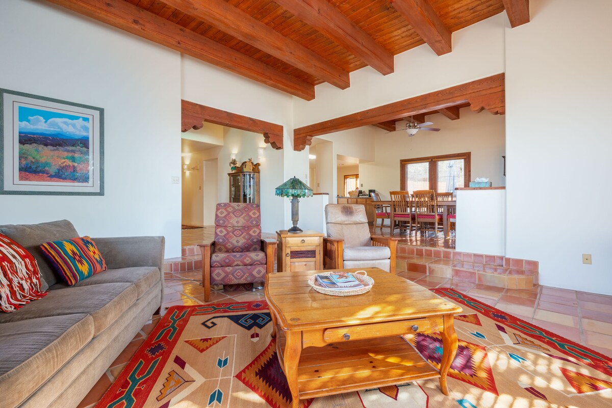 Thanks for checking out our listing. The guesthouse is approx 800sq ft and fully fenced in. The house is on 5 acres, furnished with local New Mexico finds as well as antiques. You get incredible views of the sunset and at night you can see all of the amazing stars including the Milkeyway. This home has a clean, calm yet eclectic vibe, perfect for those seeking an authentic and rustic New Mexico experience. If your wish is to escape the craziness of city life this is the place.