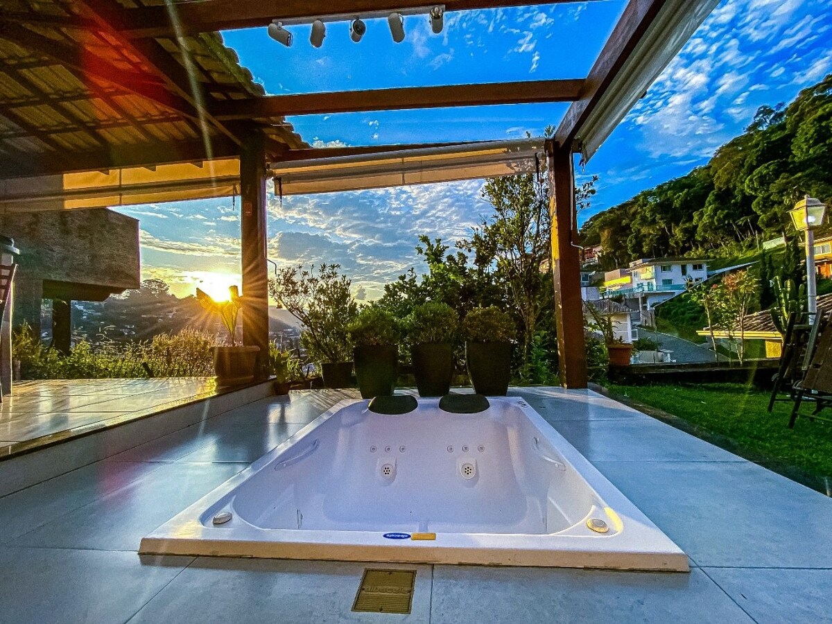 Refúgio charmoso na serra para casais e familias (até 5 hóspedes), em condomínio fechado, portaria 24h, próximo ao centro. Casa aconchegante, com decoração rústica e lazer privativo: jacuzzi com TV, mesa de bilhar e área gourmet com forno a lenha e churrasqueira. O anfitrião é Chef de cozinha e oferece, mediante combinação, fondue de carnes ou jantar à luz de velas 🍷. 🌱 Sustentabilidade com horta orgânica. ⚠️ Área de lazer do condomínio não permitida. Host fala italiano fluente nativo 🇮🇹