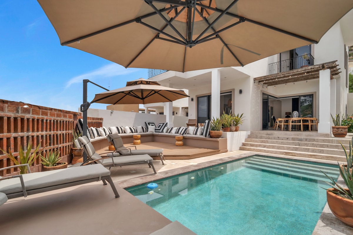 Confira nossas avaliações! Nova cobertura privativa com piscina de entrada na praia na bela, segura e privada comunidade de Pedregal, na montanha no final do centro de Cabo San Lucas, logo acima do Waldorf Astoria Resort. Vistas incríveis. 5 minutos a pé da cidade, marina, praias, restaurantes, atividades aquáticas, compras e passeios. Serviço de concierge, dois restaurantes no local, quadras de pickleball/tênis, aulas de fitness, praia privativa. Entrada principal sem chave. Precisa de outro quarto? Consulte Air B N B. com/room/16557152