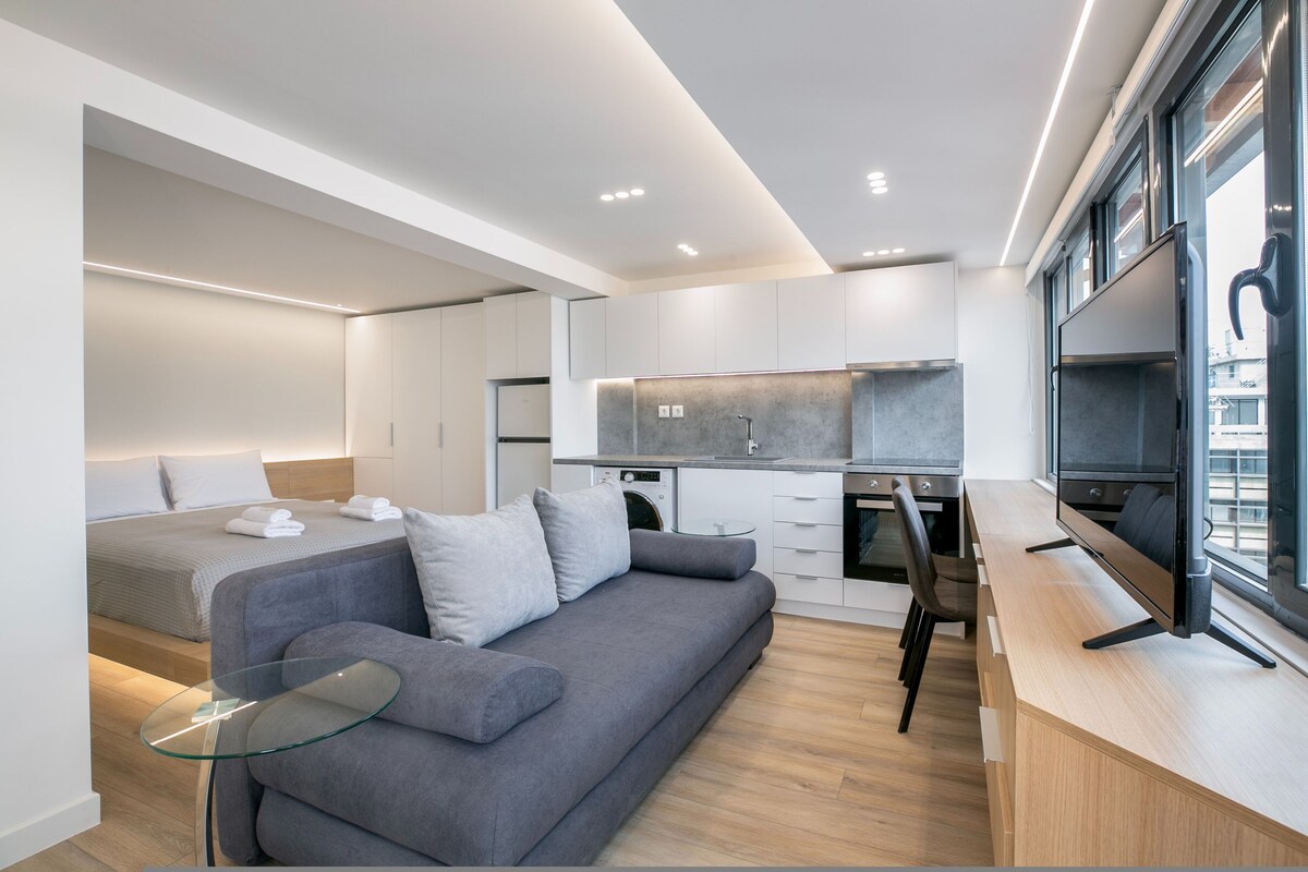 Stylish, spacious (50 sq.m.) one-bedroom ground floor apartment, newly built in 2022. Decorated with every attention to detail, the space aims at providing an enjoyable guest experience. Ideal for couples or families, located at a peaceful part of Piraeus, yet just 5 minutes away from the port by car. This is the place to be either for one night before catching a boat to the Greek islands or for longer stays, since it is fully equipped and the kitchen is suitable for meal preparation.