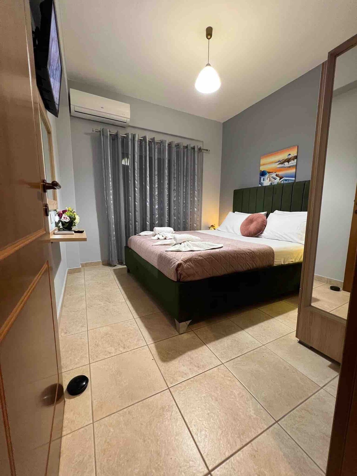 O novo apartamento totalmente equipado está localizado em Nea Moudania, Chalkidiki, a 250 metros da praia e a 800 metros do centro da cidade. O apartamento é composto por um quarto com uma cama king size e um sofá-cama, banheiro privativo e cozinha totalmente equipada. Os hóspedes têm acesso e vista para o jardim de quatro hectares, onde podem desfrutar a qualquer momento de uma das muitas salas de estar disponíveis no local.