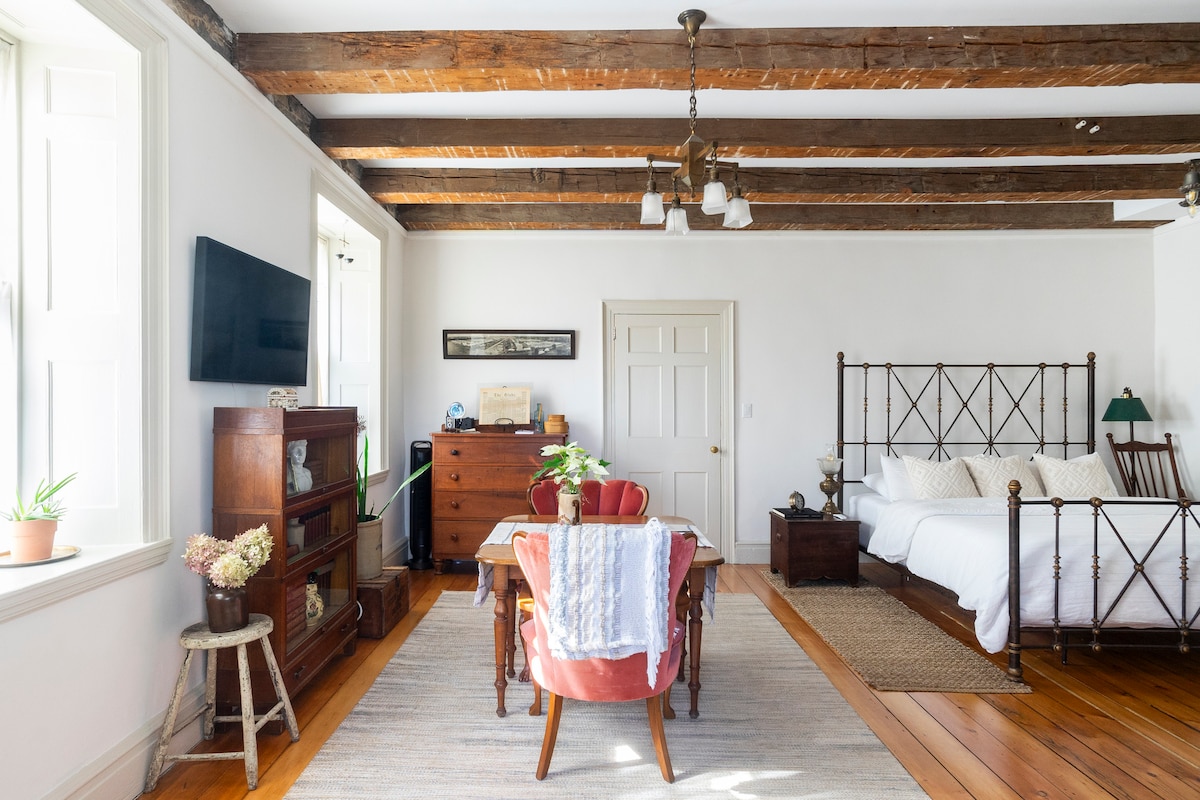 Planeje sua estadia na Fazenda Swallow Meadows. Suíte estúdio privativa e independente no segundo andar (15 degraus) da casa da fazenda em 24 acres. Projetado na varanda para assistir o cavalo vizinho e a vida selvagem. Suíte totalmente renovada, incluindo cozinha completa e banheiro. Chuveiro com box de vidro. Caminhe até o lago depois do café da manhã e ouça os sapos-boi. Se você tiver sorte, poderá ver veados ou a garça local. A suíte inclui Wi-Fi, traga seu dispositivo com tela. Os animais de estimação exigem aprovação antes da confirmação da reserva.