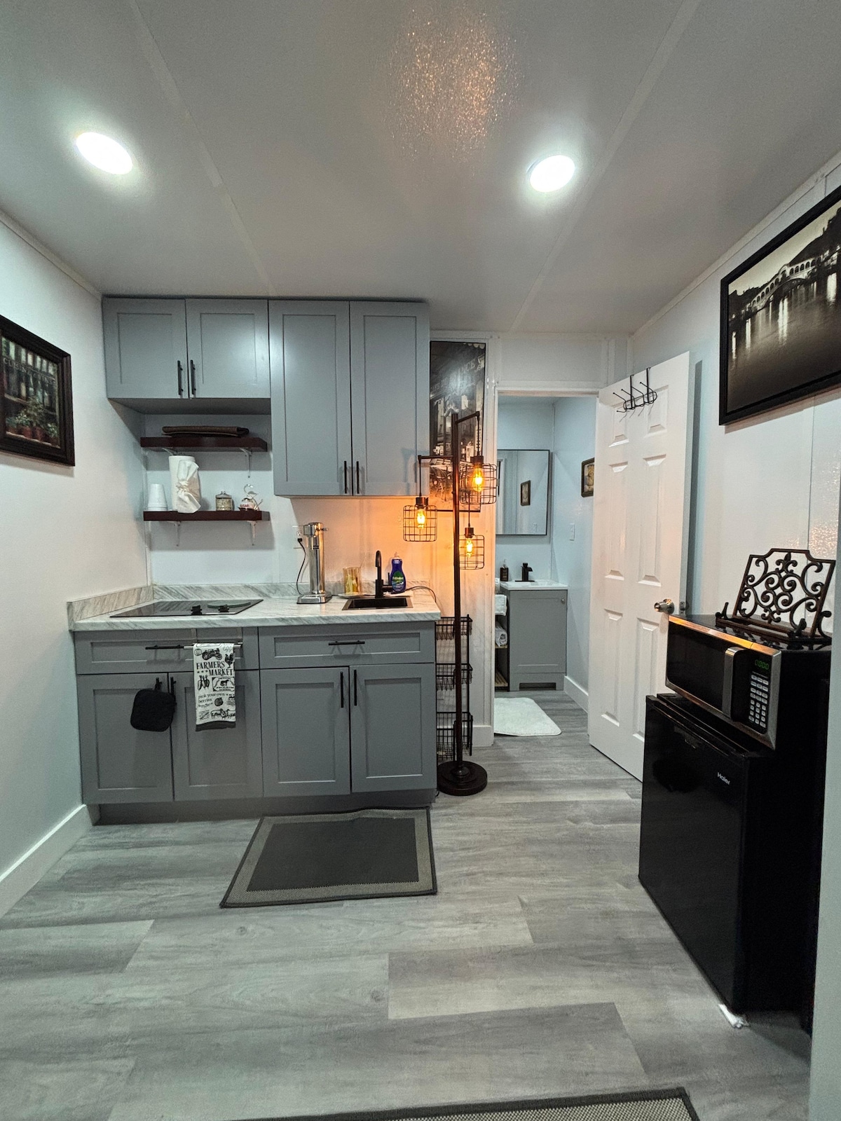 Bem-vindo ao seu retiro de praia descontraído! Nosso estúdio de 250 pés quadrados completamente remodelado está cheio de luz natural e vibrações relaxantes de praia, localizado a uma curta caminhada de uma praia tranquila. Depois de um dia ensolarado, relaxe em frente à TV inteligente de última geração. O banheiro moderno dispõe de um chuveiro de efeito chuva refrescante e um piso de pedra de seixo único. Para sua comodidade, o estúdio inclui uma mini cozinha, espaço de trabalho dedicado, brinquedos para crianças e está totalmente abastecido com itens essenciais de praia.