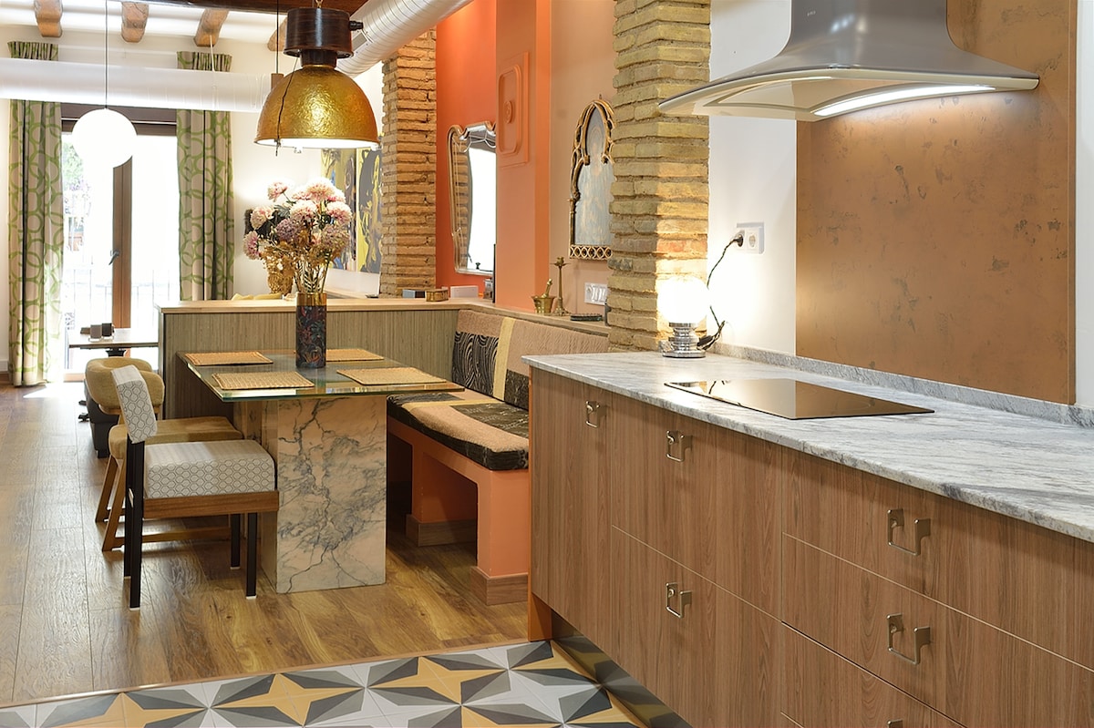 Lindo e romântico apartamento (WiFi). Ao lado da Plaza del Pilar e no centro, espaços de arte e cultura. Ao lado de áreas de lazer e serviços: supermercados, farmácias, clínica de saúde. Você vai adorar meu apartamento, pois é muito tranquilo e silencioso, com um bairro tranquilo e uma cama muito confortável. Os tetos altos e a lareira a lenha farão com que você aproveite ao máximo a sua estadia e, graças ao charme que tem, você poderá desconectar-se completamente na sua escapada para Saragoça.