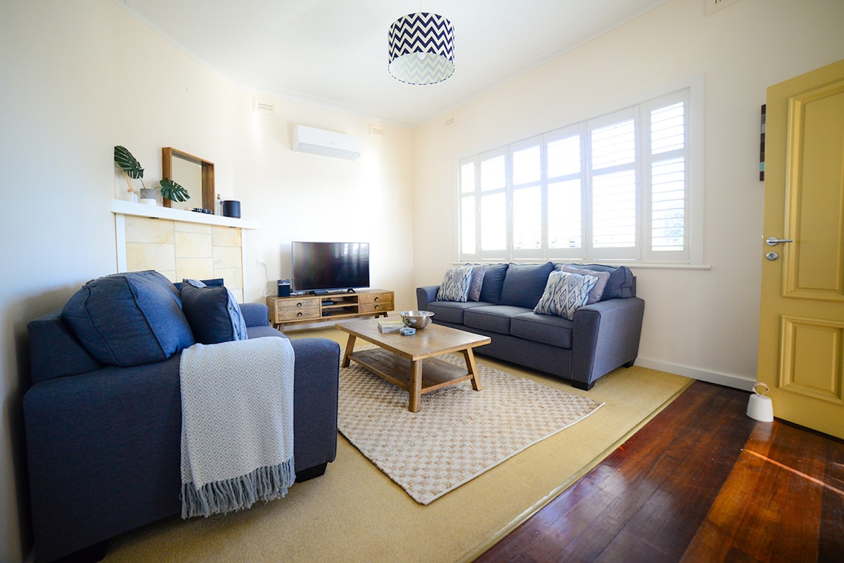 A welcoming 3 bedroom Villa situated in the heart of Kingscote. 200m from the foreshore, close to the jetty and a short stroll to shops & restaurants making it the perfect base for your Kangaroo Island experience. A contemporary styled home with all of the comforts of your own home. The rear yard contains a 100yr old Mulberry Tree that will delight you and your companions. The yard is fully secured for pets. We look forward to you becoming our guests. Includes guest bikes and unlimited WIFI