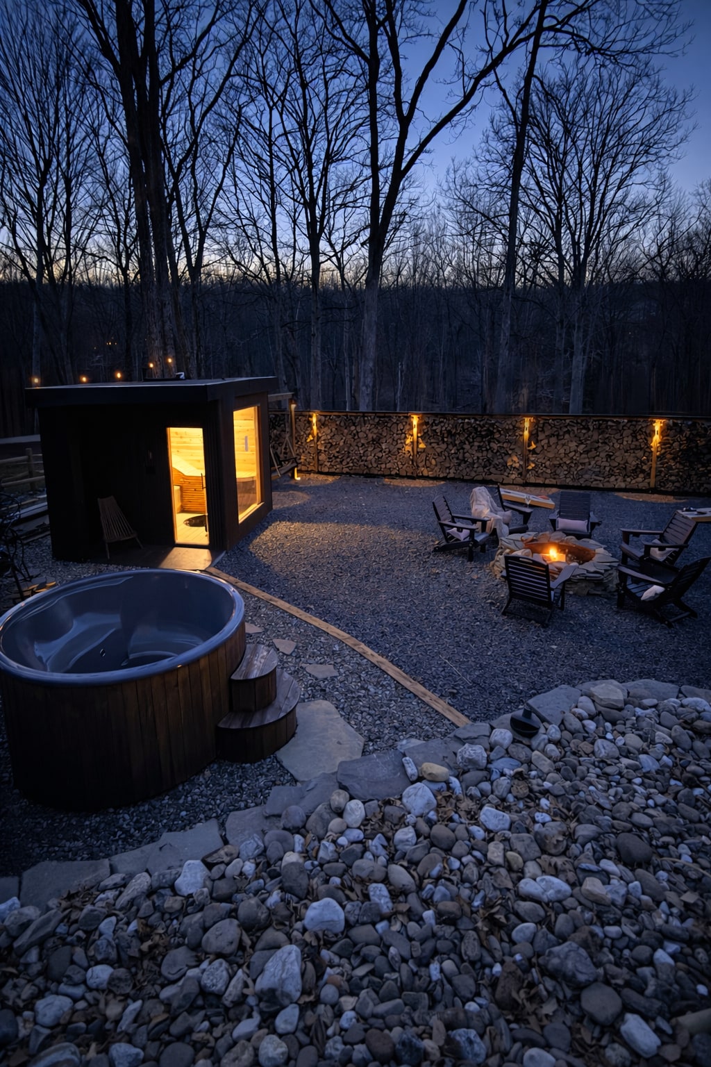 Geodomo de Sandy Creek com sauna e fogueira