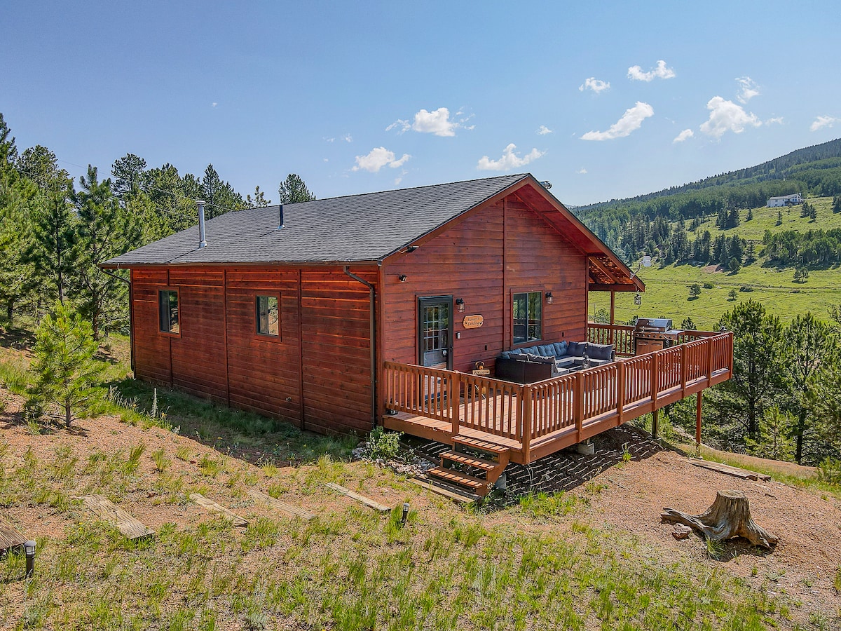 Acorde com o som dos pássaros e da vida selvagem, relaxe no convés sob os pinheiros com uma xícara de café, olhe para as estrelas enquanto se deita na rede e aconchegue-se em frente à lareira de madeira. Monarch Landing é um verdadeiro refúgio! Totalmente reformado, oferece 2 quartos espaçosos e um sofá-cama. Aninhado nas profundezas do desejável Cripple Creek Mountain Estates, você nunca adivinharia que está a apenas 7 minutos dos cassinos e da vida noturna do centro de Cripple Creek.