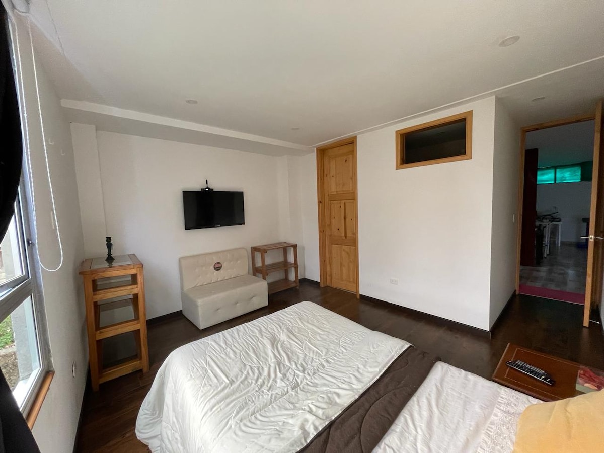 Linda casa em Marulanda Caldas, leste de Caldas. Fica a poucos passos do parque principal da aldeia, em frente à igreja principal. Apesar de estar em uma aldeia cheia de tradição e herança, nossa casa é um lugar totalmente moderno e também está equipada com tudo o que você pode precisar durante sua estadia.
