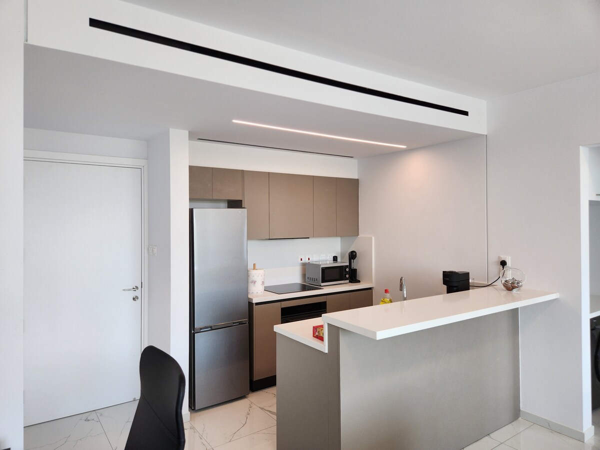 Elegante apartamento novo de 1 quarto em área tranquila de Strovolos. Tem espaço de estar com sofá confortável e TV. Há Wi-Fi rápido, unidades de ar-condicionado e aquecedores. Banheiro com chuveiro e um quarto espaçoso com TV também. Cozinha e sala de jantar com todas as comodidades necessárias, inclui um forno, torradeira, chaleira, cafeteira máquina de lavar roupa, ferro ou secador de cabelo. O apartamento tem estacionamento coberto. A uma curta distância a pé de cafeteria, padaria, farmácia. O centro da cidade fica a poucos minutos de carro.