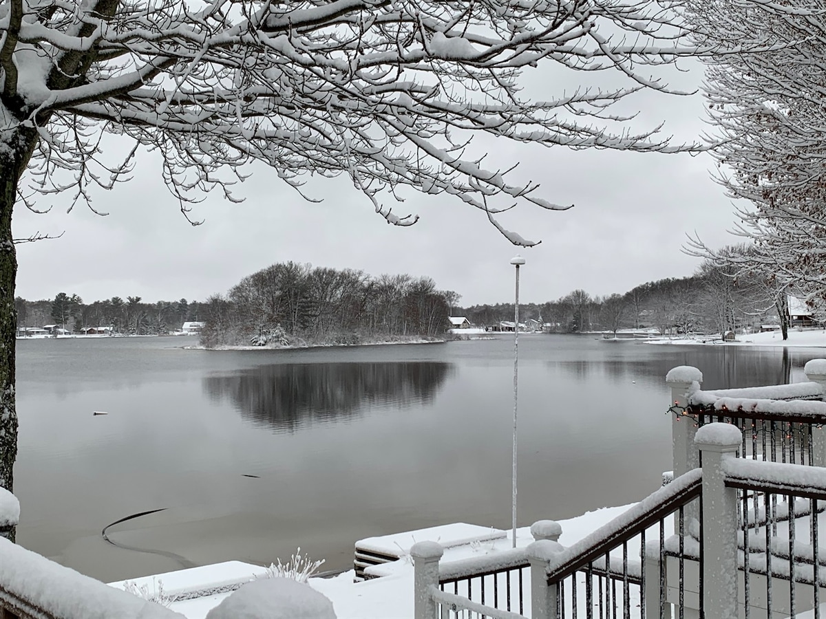 Escape the winter doldrums at our lakeside haven and reconnect with nature at this unforgettable Big Bass Lake retreat. Watch the snow fall while soaking your cares away in our Hot Springs hot tub under our covered gazebo or enjoy a crackling fire in our outdoor firepit with stunning views of the lake. Our spacious home accommodates 10 guests and boasts a sprawling living room with panoramic lake views. Fully equipped kitchen, high speed wi-fi, smart TVs, Xumo streaming boxes and shuffleboard.