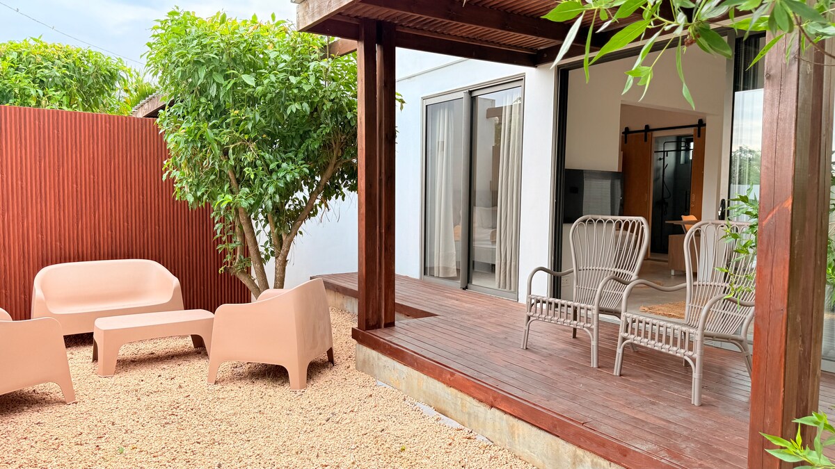 Relaxing bungalow in Pereybere. Ideal for couples, friends, and seniors. Features 1 bedrooms (convertible single beds), a modern bathroom, and open living area with a fully-equipped kitchen. Enjoy air conditioning, free WiFi, Smart TV, and a covered terrace with a private garden. Shared pool and kiosk access. Housekeeping 3 times a week. Located 300 meters from the beach with free parking and laundry service. Capacity: 2 guests, baby cots available. Perfect for a peaceful getaway!