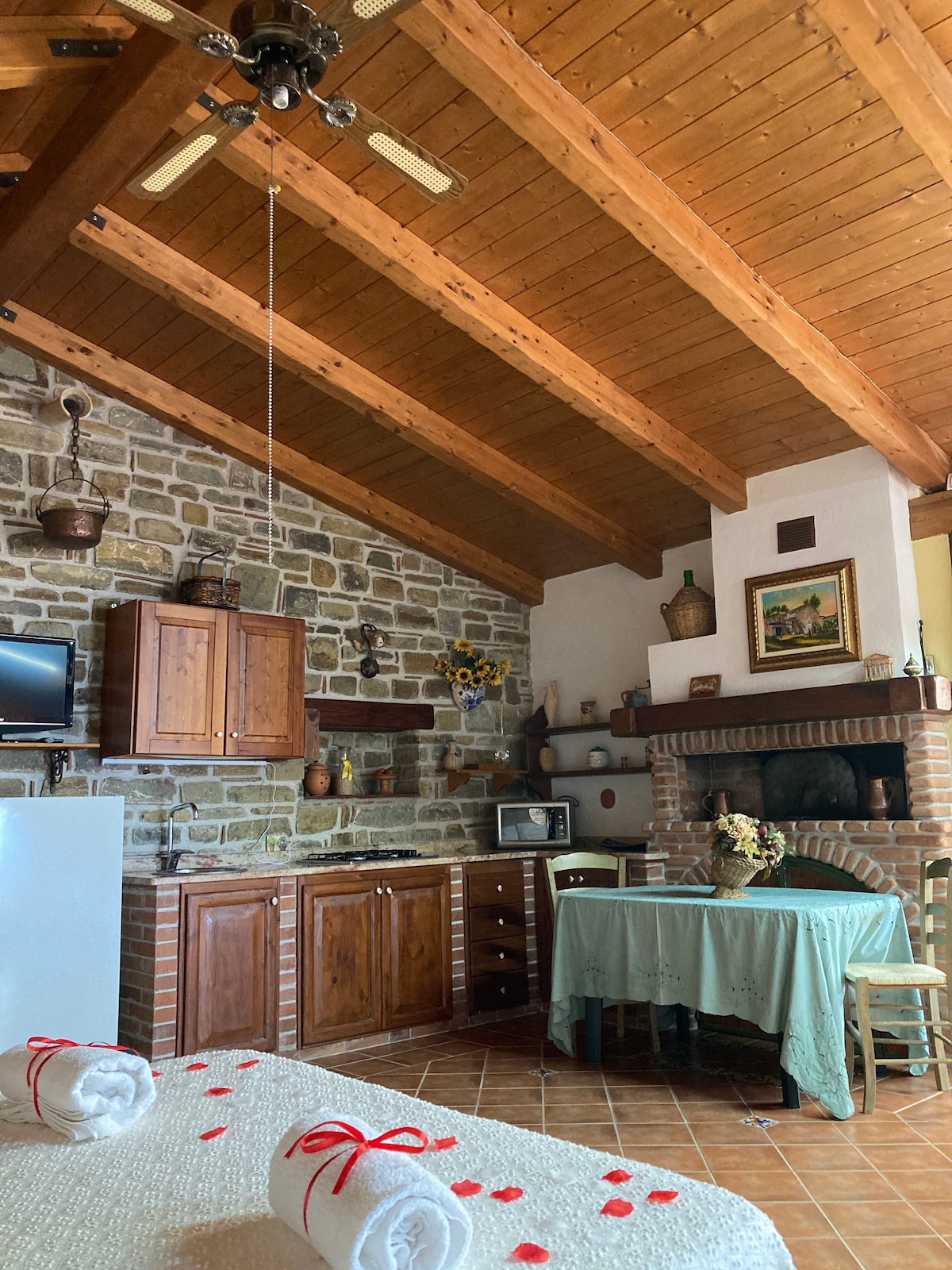 La Romantica está localizada na área mais antiga do castelo e lhe dará as boas-vindas em um ambiente luminoso, acolhedor e refinado. A entrada privada, os espaços amplos, 65 metros quadrados, as duas janelas com vista para o fosso verde abaixo, as antigas paredes de pedra, o piso de concreto, os sofás e os móveis antigos fazem dela um lugar ideal para passar momentos relaxantes que o levarão de volta no tempo com o conforto do presente, ao qual, no inverno, se adicionará a magia e o calor da lareira!