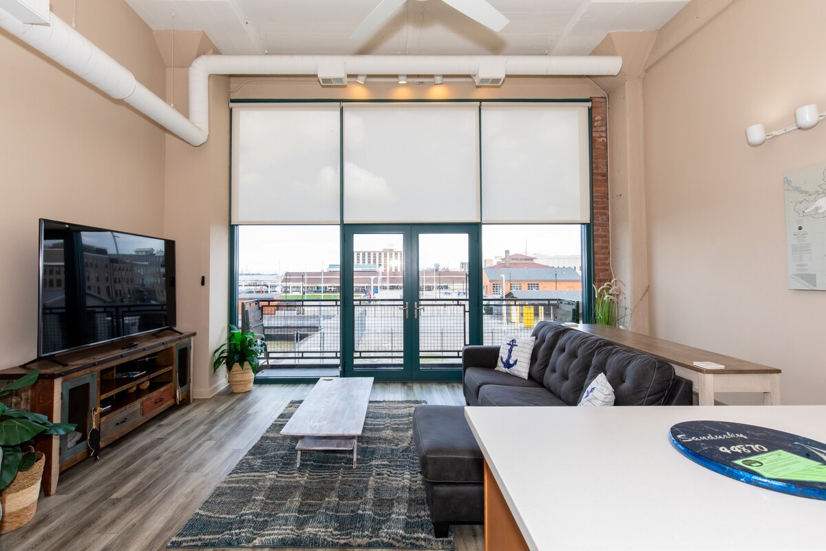 Quer uma escapada ao longo das margens do Lago Erie, então você a encontrou! Nosso espaçoso apartamento histórico recentemente reformado vem com tudo o que você gostaria. A área conjunta de estar, jantar, estação de trabalho e cozinha possui uma das maiores áreas de estar em todos os Lofts. Sua localização é ideal, ao lado do navio de cruzeiro Goodtime e Jet Express para um passeio rápido até a Ilha Kelley e Put-in-Bay, e a uma curta distância a pé e de bicicleta de muitos restaurantes e atrações... e a uma curta distância de carro de Cedar Point!