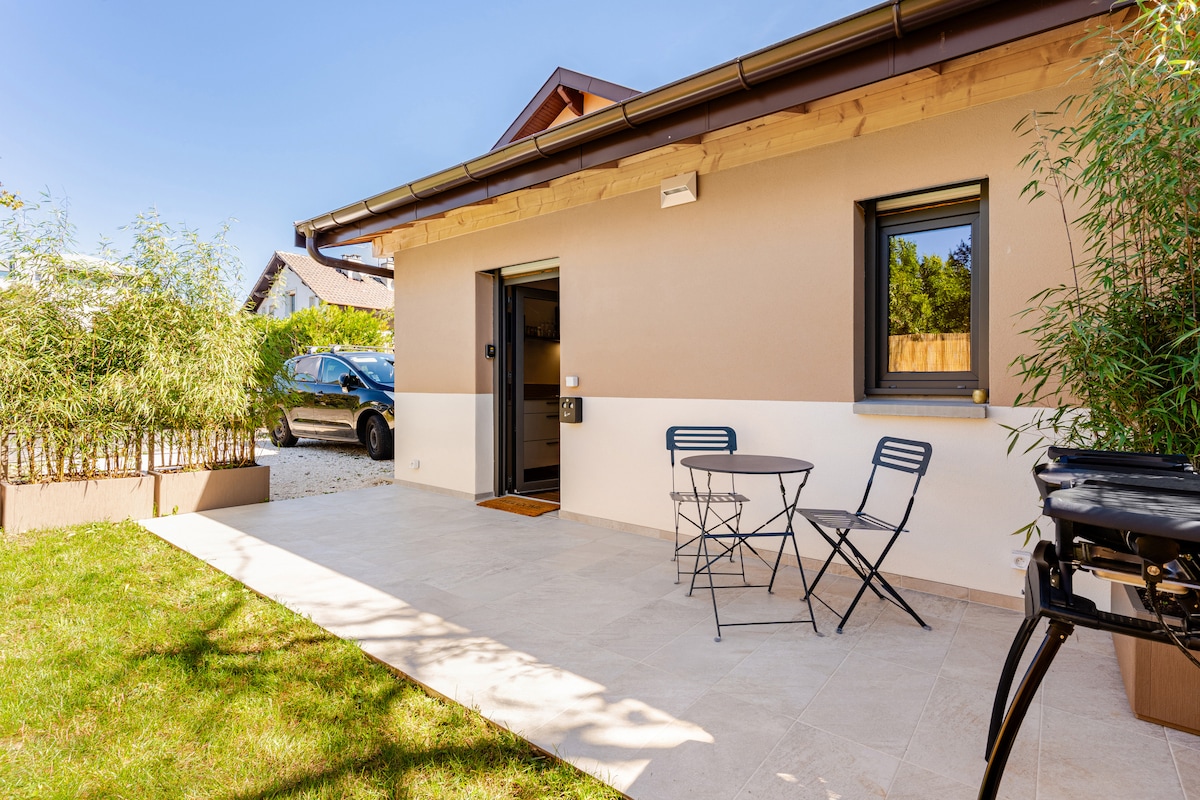 Charmosa casa de campo isolada de 20 m² a 5 min da Suíça (Genebra). Acomodação nova totalmente equipada com jardim privativo e estacionamento. Perto do centro da cidade em um bairro tranquilo. Ônibus 212 a 10 minutos a pé (Genebra - Aeroporto). Comodidades próximas. Aproveite a calma enquanto está no coração das atividades: Jet d 'eau e centro da cidade de Genebra, Vitam' Park, montanha/esqui: Alpes e Jura, Medieval Andilly, Guitar en Scène. Ideal para trabalho remoto (Wi-Fi) ou trabalho em Genebra.