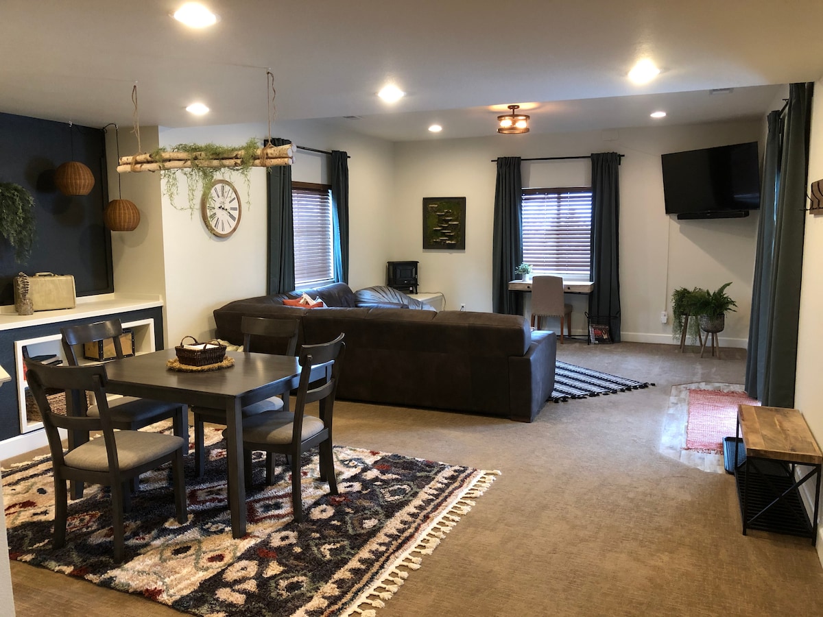 Bem-vindo ao Boho Basement - Este charmoso apartamento de um quarto está aninhado em uma localização privilegiada a poucos minutos do centro de Castle Rock, parques locais e trilhas para caminhadas. Descubra um espaço acolhedor e convidativo completo com uma cozinha completa, amplo espaço de estar e uma luxuosa cama king-size. Uma banheira de hidromassagem privativa espera por você lá fora, proporcionando o local perfeito para relaxar. No Boho Basement, você pode desfrutar de todos os confortos de um lar enquanto experimenta a beleza do Colorado. Faça sua reserva hoje!