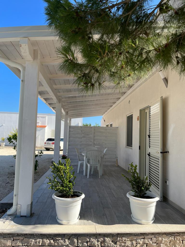 A casa está localizada no último andar e tem uma varanda privada cercada por palmeiras gigantes onde é possível tomar café da manhã ou almoçar em contato com a natureza. A cozinha e a sala de estar estão localizadas em um espaço aberto com um estilo típico da Apúlia. Há um quarto com cama de casal e um quarto com 2 camas de solteiro. Para famílias com mais de 2 crianças, é possível usar o sofá-cama na sala de estar. A casa fica a 5 min perto da praia e do centru