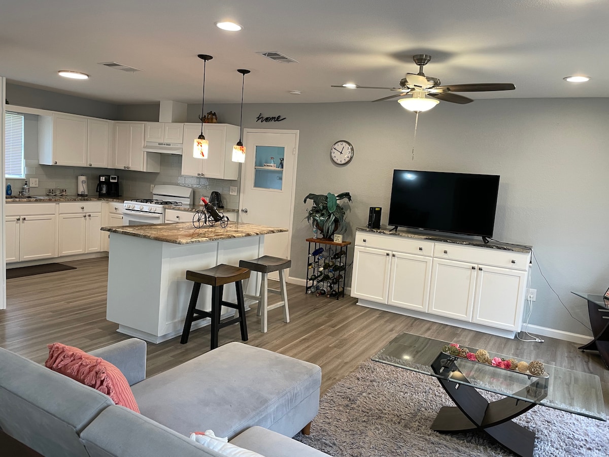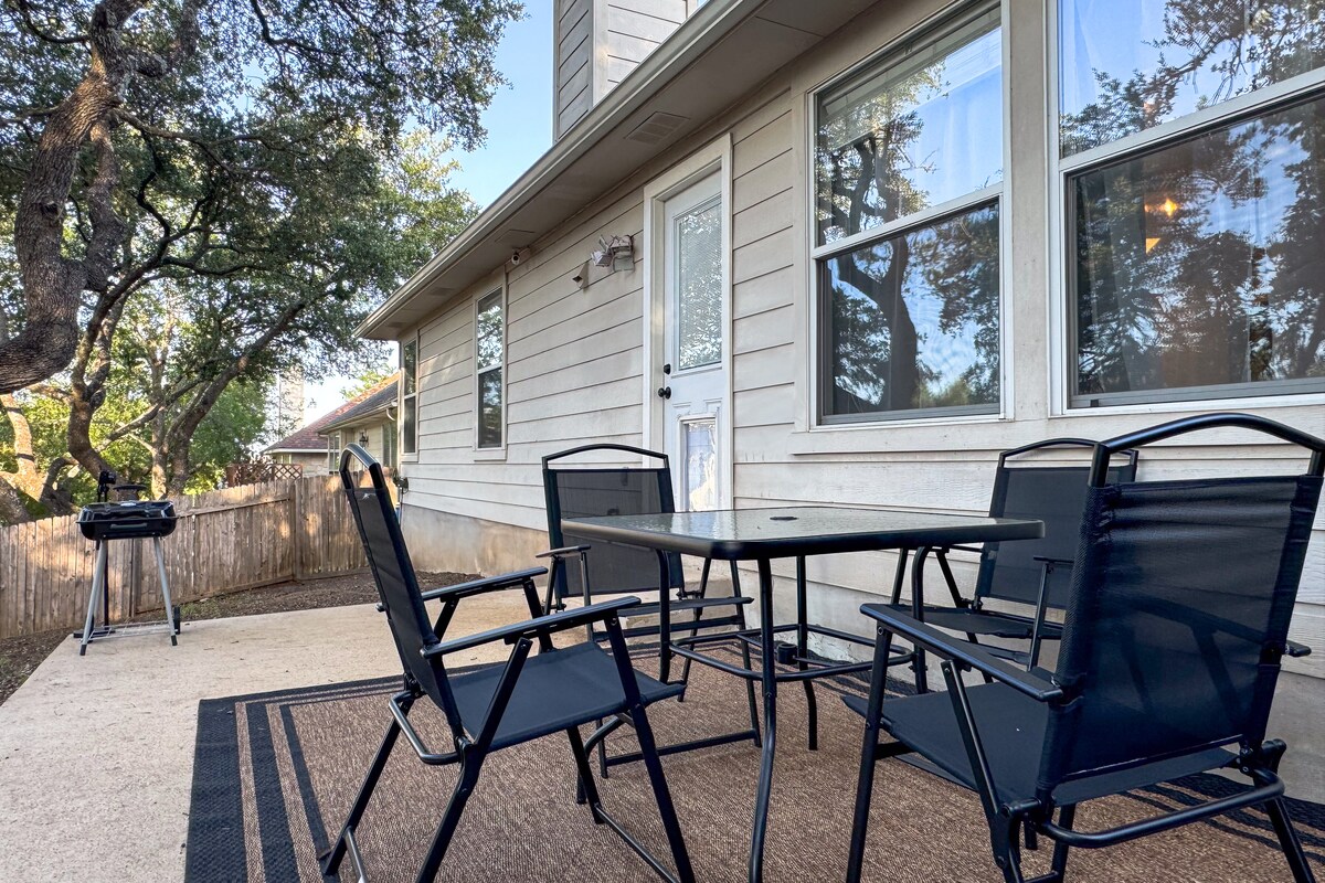 Espaçoso 2 quartos, 2 banheiros, 1 sala de escritório/entretenimento com conforto e segurança em mente. Inclui: -Fire Pit - churrasqueira ao ar livre - buraco de milho -xbox - scooter elétrica - estação de café - Câmeras exteriores -Lavadora e Secadora - Jogos familiares - Amplo estacionamento monitorado por vídeo na frente e atrás Convenientemente localizado perto da I-35, tornando as viagens ao Domínio, ao centro da cidade e ao aeroporto de fácil acesso. Também tem uma trilha de caminhada e bicicleta que leva a um parque infantil público, bem como um parque.