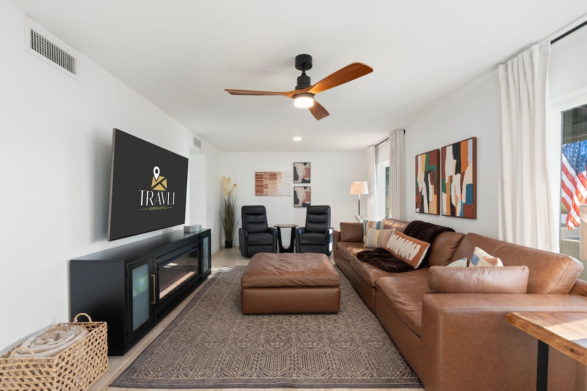 Conheça a Monarch House em um distrito histórico de Phoenix: seu refúgio tipo spa com toques artísticos únicos. O interior bem projetado dispõe de uma sala de jantar e uma cozinha totalmente equipada, perfeita para refeições memoráveis. Localizado em Uptown Phoenix, desfrute de restaurantes da moda, boutiques locais e uma vida noturna vibrante a poucos minutos de distância. Alterne facilmente entre dois espaços externos privativos e um pátio compartilhado, com uma sala de jantar ao ar livre e uma fogueira aconchegante.