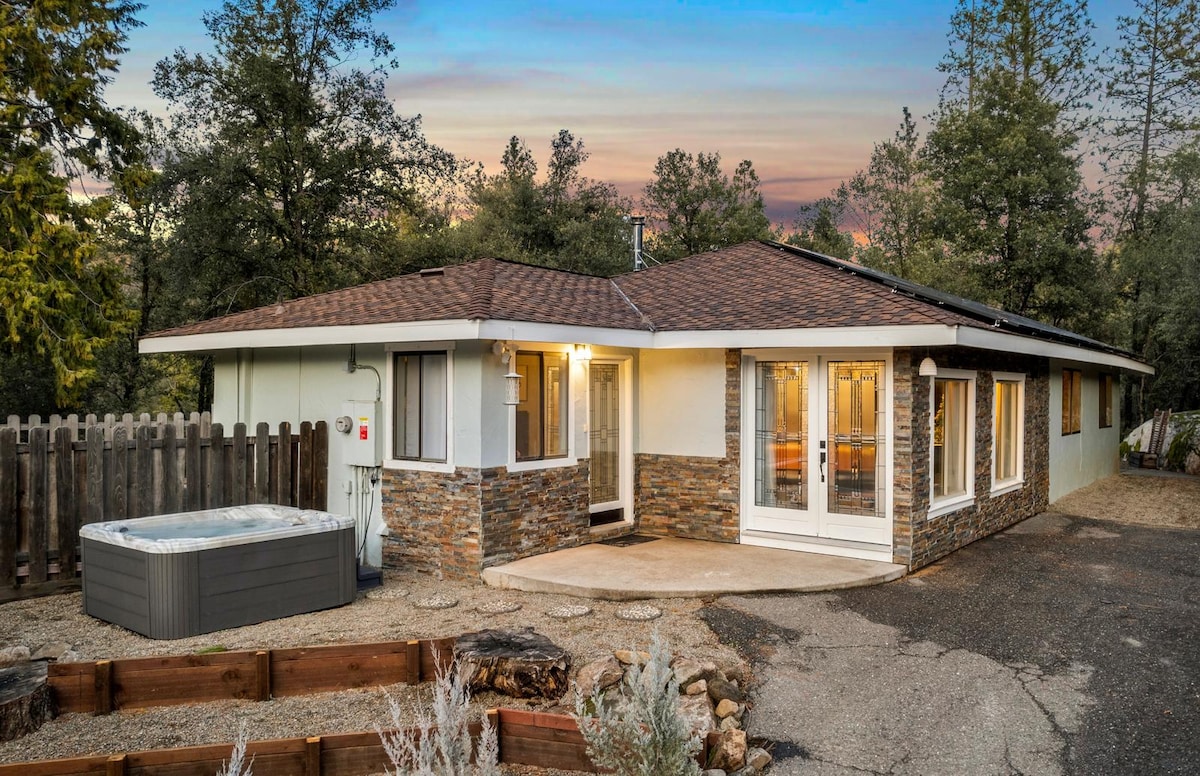 Relaxe em um retiro de bangalô encantador, aninhado nas árvores na colina acima do centro histórico de Sonora. Yosemite, Pinecrest, Columbia State Park estão todos nas proximidades, assim como excelentes restaurantes, degustação de vinhos e teatro. Você pode nadar ou relaxar, fazer caminhadas ou andar de bicicleta, tudo no seu ritmo. É uma curta distância de carro para esqui alpino e nórdico e caminhadas na neve. Muitas aventuras podem começar a partir do seu bangalô no topo da colina. A CIDADE EXIGE LIMITE DE OCUPAÇÃO - DUAS PESSOAS/QUARTO mais berço e colchão extras estão disponíveis.