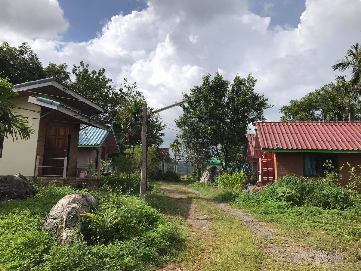 Acomodação de um quarto com a casa inteira, incluindo cozinha , sala de estar , sala de jantar, grande área externa e jardins. É o lugar perfeito para você e sua família ficarem. Fica a apenas 13 quilômetros do Parque Nacional Phu Kradueng e a apenas 8 quilômetros do mercado de Phu Kradueng.