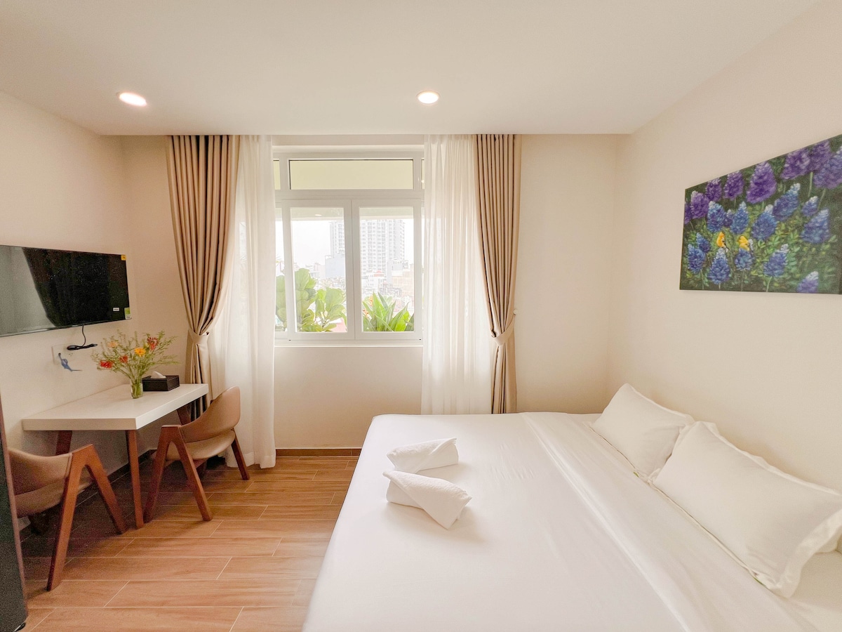 - Apartamento ensolarado, moderno e elegante - Localização privilegiada no Distrito 1, Cidade de Ho Chi Minh - Perto dos principais pontos turísticos, restaurantes e entretenimento (Tan Dinh Church/Pink Church, War Remnants Museum, Saigon Notre-Dame Basilica, Saigon Central Post Office, Reunification Palace) - Ambiente tranquilo com vista para a rua e vegetação - Janelas grandes que fornecem luz natural - Perfeito para viajantes de negócios e lazer - Estadia confortável e inesquecível em HCMC