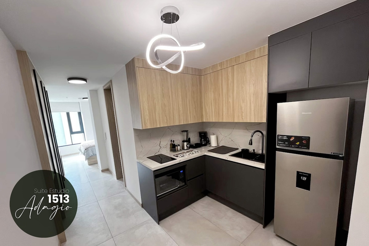 Suíte espetacular localizada em frente ao Parque La Carolina. Imagine a vista do 17º andar, quer esteja relaxando no sofá ou na cama. Apresenta uma cozinha totalmente equipada, internet rápida e você se sentirá em casa. Fácil acesso a pé ao metrô, ao Mall El Jardín e ao CCI. Piscina - Sauna - Jacuzzi Academia bem equipada Terraço incrível Smart TV de 60" - Netflix Cooktop de indução Refrigerador Lavanderia dentro do apartamento Micro-ondas Cortinas blackout Ferro de passar roupa